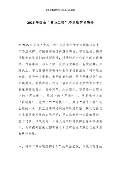 / 【七哥公文】2026年:2025年国企“青马工程”培训班学习感悟_副本+更多免费公文+VX:QiGeGongWen2024