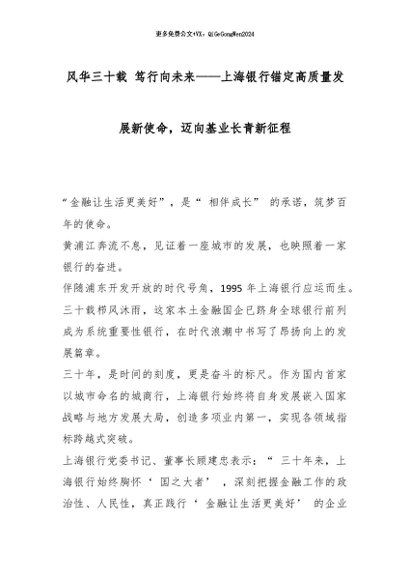 【七哥公文】2026年:风华三十载 笃行向未来——上海银行锚定高质量发展新使命,迈向基业长青新征程_副本+更多免费公文+VX:QiGeGongWen2024