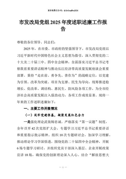 / 【七哥公文】2026年:市发改局党组2025年度述职述廉工作报告+更多免费公文+VX:QiGeGongWen2024