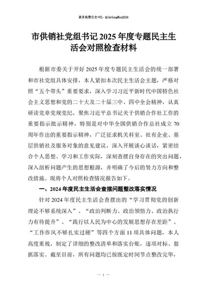 【七哥公文】2026年:市供销社党组书记2025年度专题民主生活会对照检查材料+更多免费公文+VX:QiGeGongWen2024