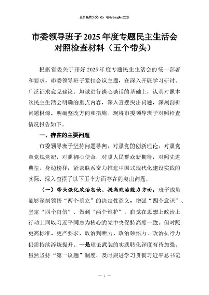 【七哥公文】2026年:市委领导班子2025年度专题民主生活会对照检查材料(五个带头)+更多免费公文+VX:QiGeGongWen2024