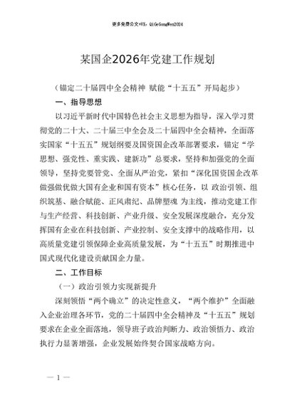 / 【七哥公文】2026年:某国企2026年党建工作规划+更多免费公文+VX:QiGeGongWen2024