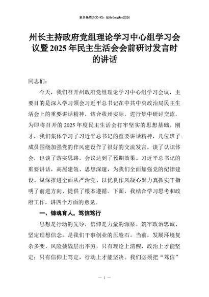 【七哥公文】2026年:州长主持政府党组理论学习中心组学习会议暨2025年民主生活会会前研讨发言时的讲话+更多免费公文+VX:QiGeGongWen2024