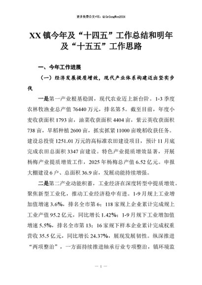 【七哥公文】2026年:XX镇今年及“十四五”工作总结和明年及“十五五”工作思路+更多免费公文+VX:QiGeGongWen2024