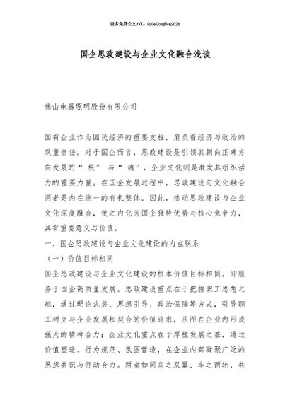 / 【七哥公文】2026年:国企思政建设与企业文化融合浅谈_副本+更多免费公文+VX:QiGeGongWen2024