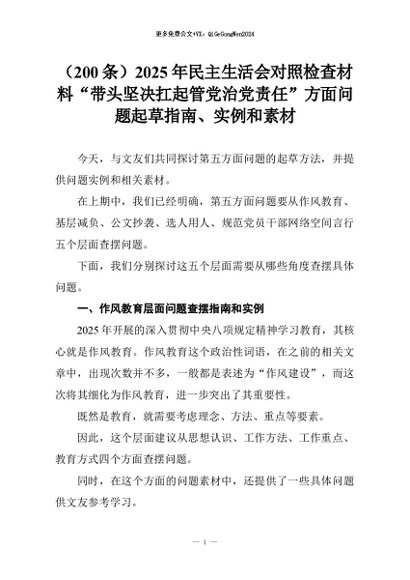 【七哥公文】2026年:(200条)2025年民主生活会对照检查材料“带头坚决扛起管党治党责任”方面问题起草指南、实例和素材+更多免费公文+VX:QiGeGongWen2024