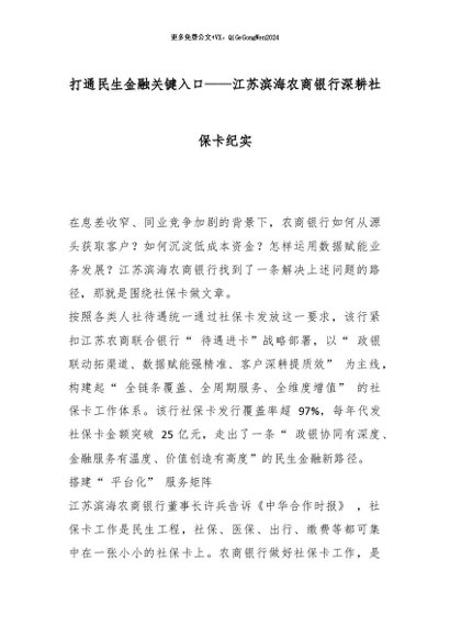 【七哥公文】2026年:打通民生金融关键入口——江苏滨海农商银行深耕社保卡纪实_副本+更多免费公文+VX:QiGeGongWen2024