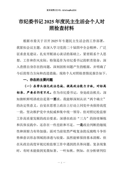 【七哥公文】2026年:市纪委书记2025年度民主生活会个人对照检查材料_副本+更多免费公文+VX:QiGeGongWen2024