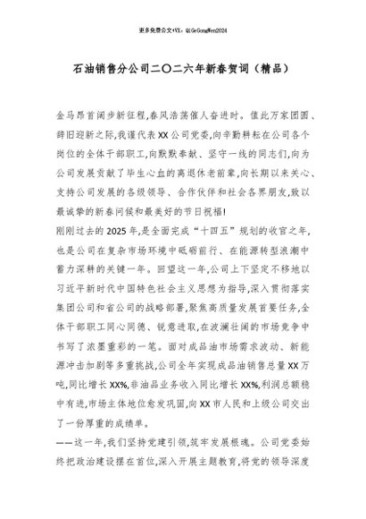 / 【七哥公文】2026年:石油销售分公司二〇二六年新春贺词(精品)_副本+更多免费公文+VX:QiGeGongWen2024