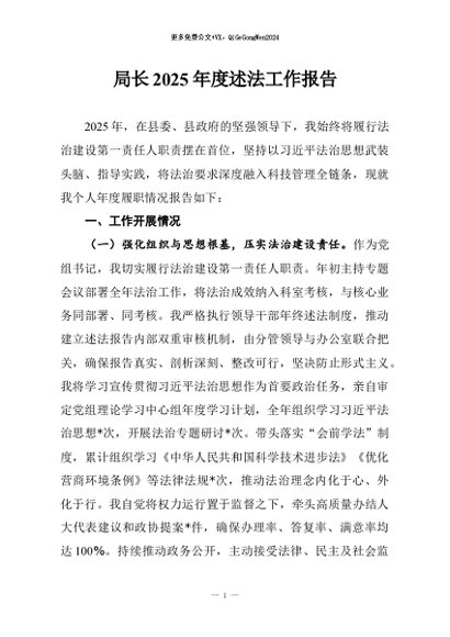 / 【七哥公文】2026年:局长2025年度述法工作报告+更多免费公文+VX:QiGeGongWen2024