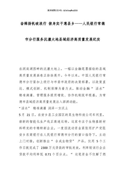 【七哥公文】2026年:奋楫扬帆破浪行 俯身实干惠县乡——人民银行常德市分行服务沅澧大地县域经济高质量发展纪实_副本+更多免费公文+VX:QiGeGongWen2024