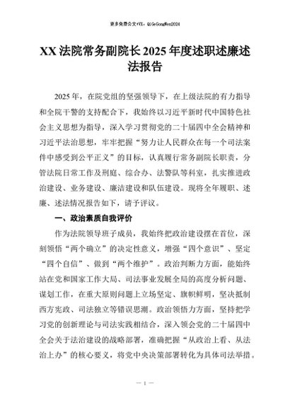 / 【七哥公文】2026年:XX法院常务副院长2025年度述职述廉述法报告+更多免费公文+VX:QiGeGongWen2024