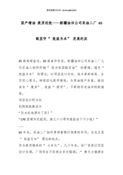 【七哥公文】2026年:固产增油 提质创效——新疆油田公司采油二厂 65 载坚守“ 效益为本” 发展纪实_副本+更多免费公文+VX:QiGeGongWen2024
