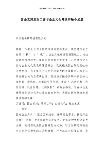 / 【七哥公文】2026年:国企党建思政工作与企业文化建设的融合发展_副本+更多免费公文+VX:QiGeGongWen2024