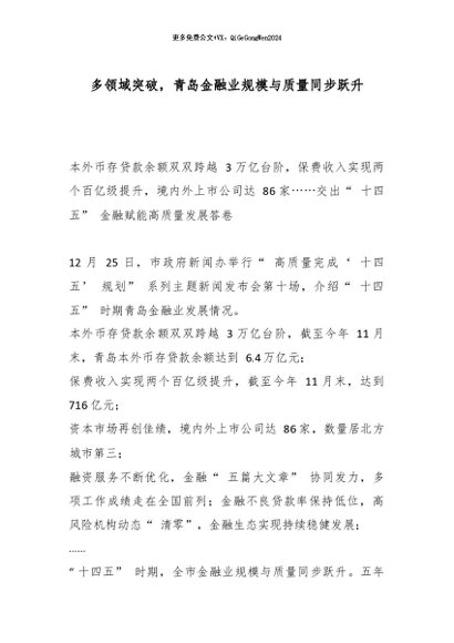 / 【七哥公文】2026年:多领域突破,青岛金融业规模与质量同步跃升_副本+更多免费公文+VX:QiGeGongWen2024