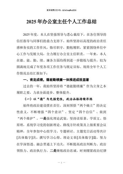 / 【七哥公文】2026年:2025年办公室主任个人工作总结+更多免费公文+VX:QiGeGongWen2024