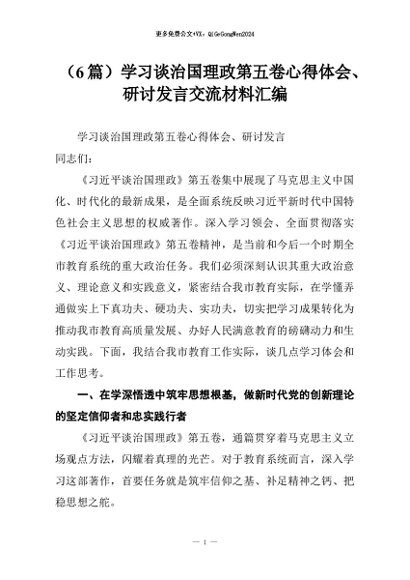 【七哥公文】2026年:(6篇)学习谈治国理政第五卷心得体会、研讨发言交流材料汇编+更多免费公文+VX:QiGeGongWen2024