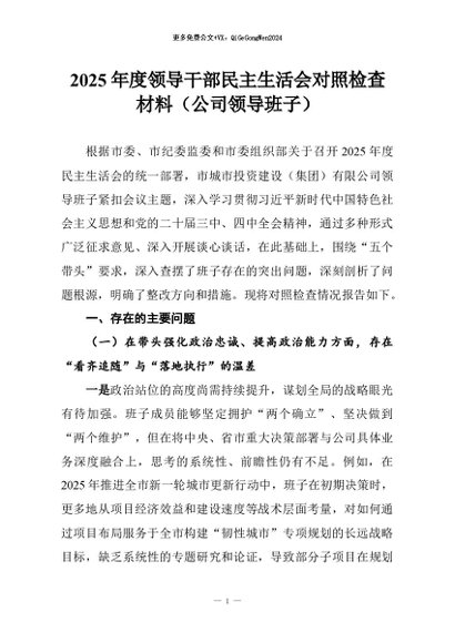 【七哥公文】2026年:2025年度领导干部民主生活会对照检查材料(公司领导班子)+更多免费公文+VX:QiGeGongWen2024