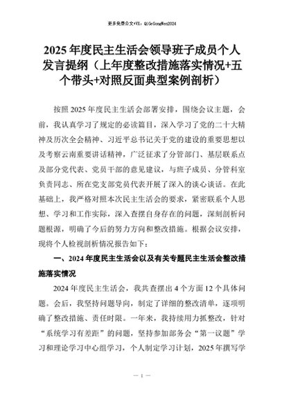 【七哥公文】2026年:2025年度民主生活会领导班子成员个人发言提纲(上年度整改措施落实情况+五个带头+对照反面典型案例剖析)+更多免费公文+VX:QiGeGongWen2024