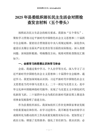 【七哥公文】2026年:2025年县委组织部长民主生活会对照检查发言材料(五个带头)+更多免费公文+VX:QiGeGongWen2024