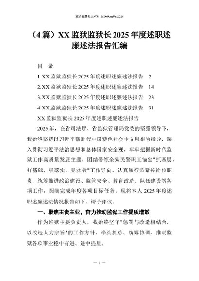 【七哥公文】2026年:(4篇)XX监狱监狱长2025年度述职述廉述法报告汇编+更多免费公文+VX:QiGeGongWen2024