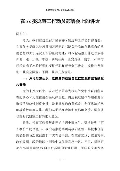 / 【七哥公文】2026年:在xx委巡察工作动员部署会上的讲话+更多免费公文+VX:QiGeGongWen2024
