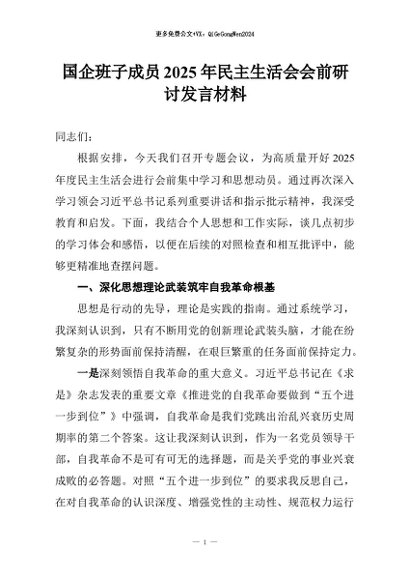 【七哥公文】2026年:国企班子成员2025年民主生活会会前研讨发言材料_副本+更多免费公文+VX:QiGeGongWen2024