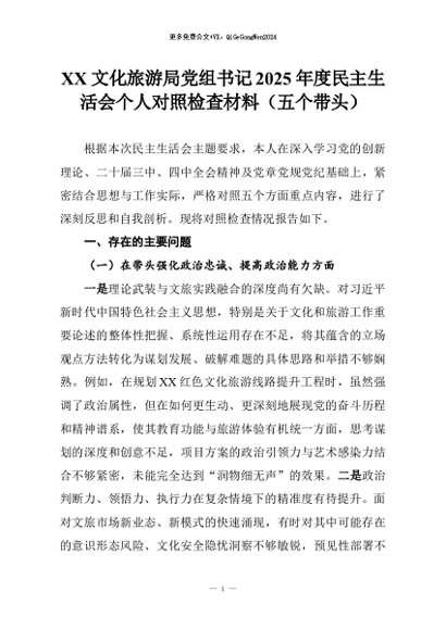 【七哥公文】2026年:XX文化旅游局党组书记2025年度民主生活会个人对照检查材料(五个带头)_副本+更多免费公文+VX:QiGeGongWen2024