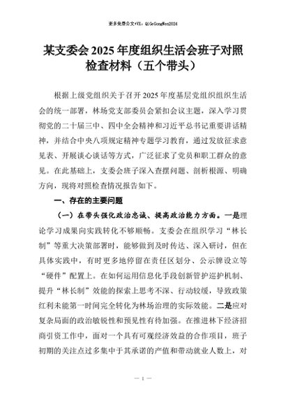 【七哥公文】2026年:某支委会2025年度组织生活会班子对照检查材料(五个带头)_副本+更多免费公文+VX:QiGeGongWen2024