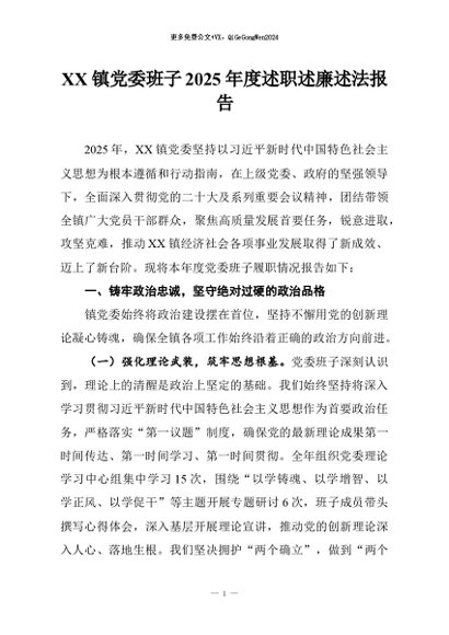 / 【七哥公文】2026年:XX镇党委班子2025年度述职述廉述法报告+更多免费公文+VX:QiGeGongWen2024