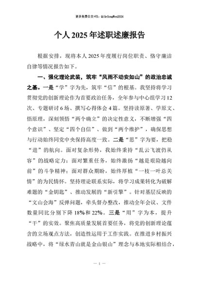 / 【七哥公文】2026年:个人2025年述职述廉报告+更多免费公文+VX:QiGeGongWen2024