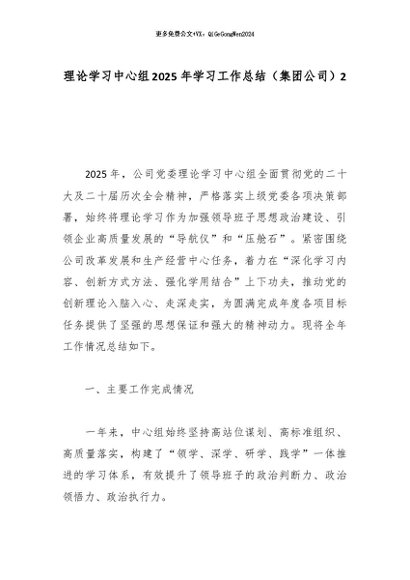 【七哥公文】2026年:理论学习中心组2025年学习工作总结(集团公司)2_副本+更多免费公文+VX:QiGeGongWen2024