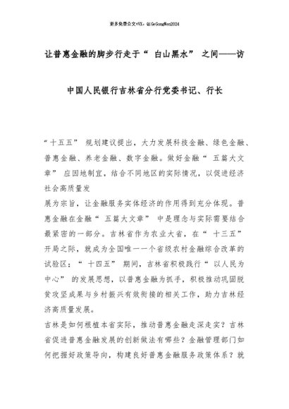 【七哥公文】2026年:让普惠金融的脚步行走于“ 白山黑水” 之间——访中国人民银行吉林省分行党委书记、行长_副本+更多免费公文+VX:QiGeGongWen2024