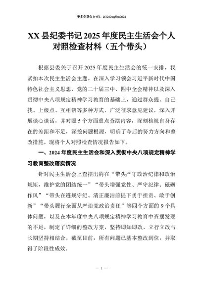 【七哥公文】2026年:XX县纪委书记2025年度民主生活会个人对照检查材料(五个带头)_副本+更多免费公文+VX:QiGeGongWen2024