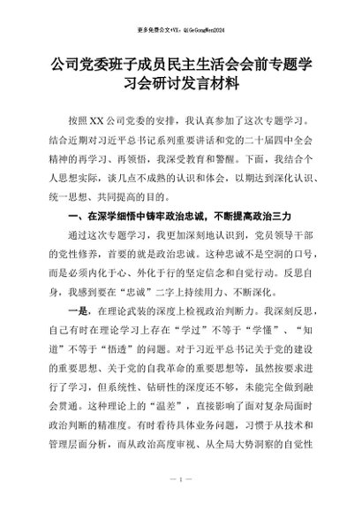 【七哥公文】2026年:公司党委班子成员民主生活会会前专题学习会研讨发言材料_副本+更多免费公文+VX:QiGeGongWen2024