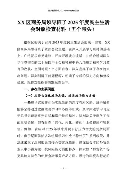【七哥公文】2026年:XX区商务局领导班子2025年度民主生活会对照检查材料(五个带头)_副本+更多免费公文+VX:QiGeGongWen2024
