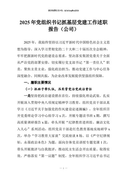 【七哥公文】2026年:2025年党组织书记抓基层党建工作述职报告(公司)+更多免费公文+VX:QiGeGongWen2024