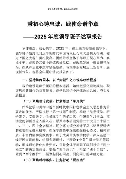 【七哥公文】2026年:2025年度领导班子述职报告:秉初心铸忠诚,践使命谱华章_副本+更多免费公文+VX:QiGeGongWen2024