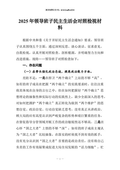 / 【七哥公文】2026年:2025年领导班子民主生活会对照检视材料_副本+更多免费公文+VX:QiGeGongWen2024