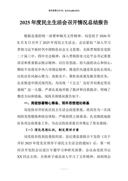 / 【七哥公文】2026年:2025年度民主生活会召开情况总结报告_副本+更多免费公文+VX:QiGeGongWen2024