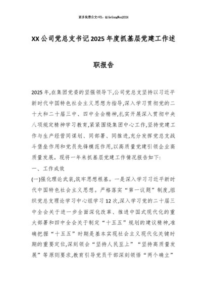 【七哥公文】2026年:XX公司党总支书记2025年度抓基层党建工作述职报告_副本+更多免费公文+VX:QiGeGongWen2024