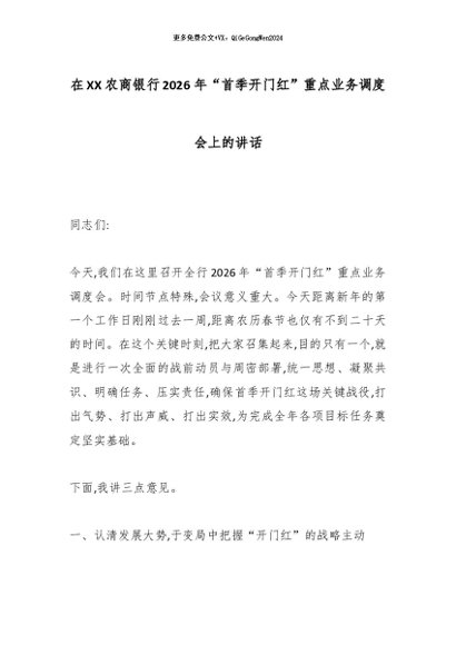 【七哥公文】2026年:在XX农商银行2026年“首季开门红”重点业务调度会上的讲话_副本+更多免费公文+VX:QiGeGongWen2024