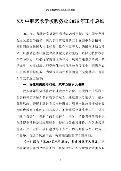 / 【七哥公文】2026年:XX中职艺术学校教务处2025年工作总结+更多免费公文+VX:QiGeGongWen2024