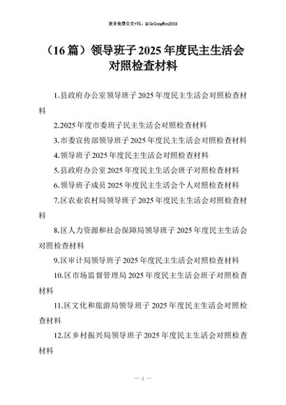 【七哥公文】2026年:(16篇)领导班子2025年度民主生活会对照检查材料+更多免费公文+VX:QiGeGongWen2024