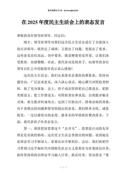 / 【七哥公文】2026年:在2025年度民主生活会上的表态发言+更多免费公文+VX:QiGeGongWen2024