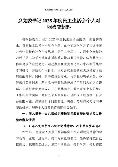 【七哥公文】2026年:乡党委书记2025年度民主生活会个人对照检查材料+更多免费公文+VX:QiGeGongWen2024