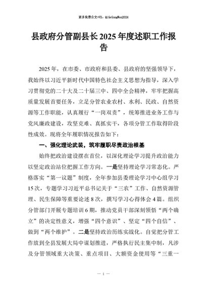 / 【七哥公文】2026年:县政府分管副县长2025年度述职工作报告+更多免费公文+VX:QiGeGongWen2024