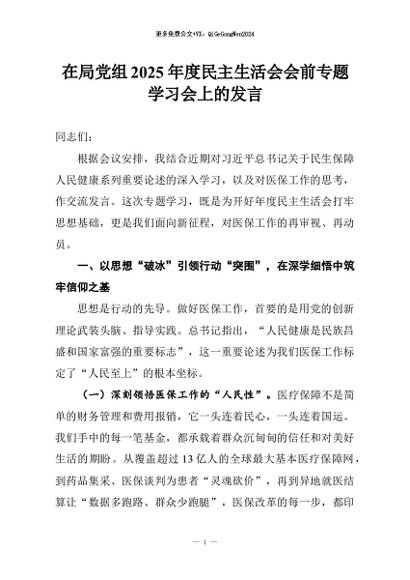 【七哥公文】2026年:在局党组2025年度民主生活会会前专题学习会上的发言+更多免费公文+VX:QiGeGongWen2024