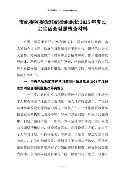 【七哥公文】2026年:市纪委监委派驻纪检组组长2025年度民主生活会对照检查材料+更多免费公文+VX:QiGeGongWen2024