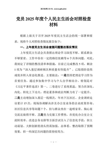 【七哥公文】2026年:党员2025年度个人民主生活会对照检查材料+更多免费公文+VX:QiGeGongWen2024